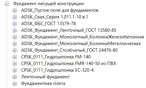 Добавлены семейства гидрошпонок:
