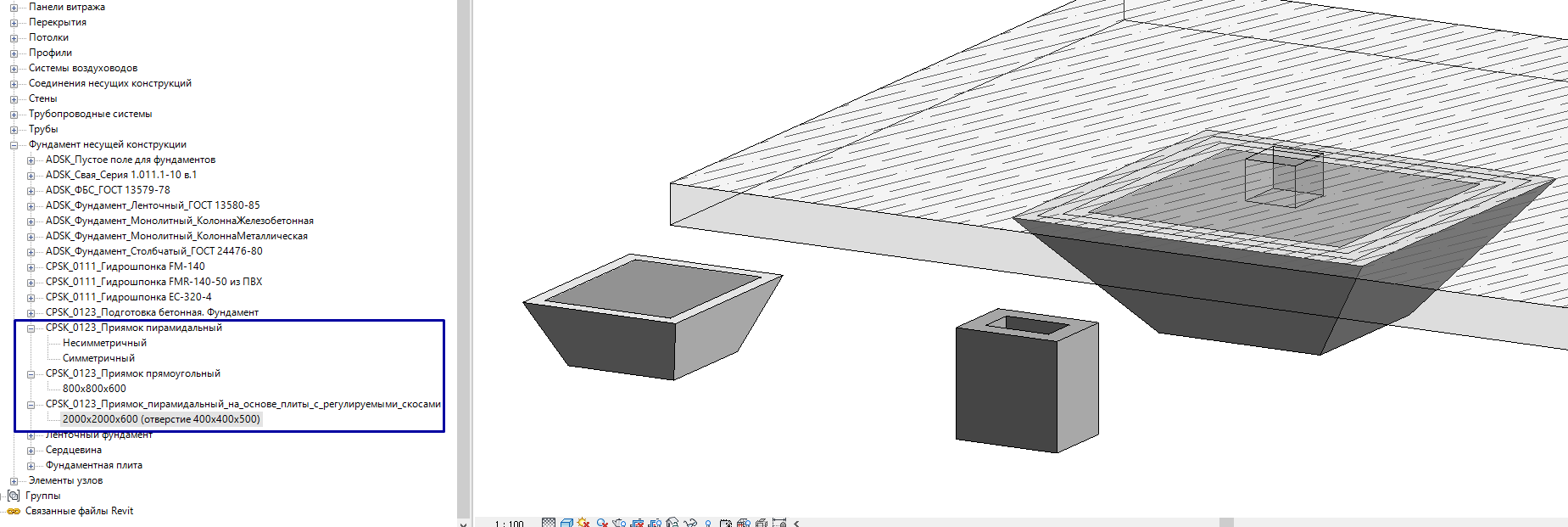 Семейства приямков: прямоугольный и пирамидальный