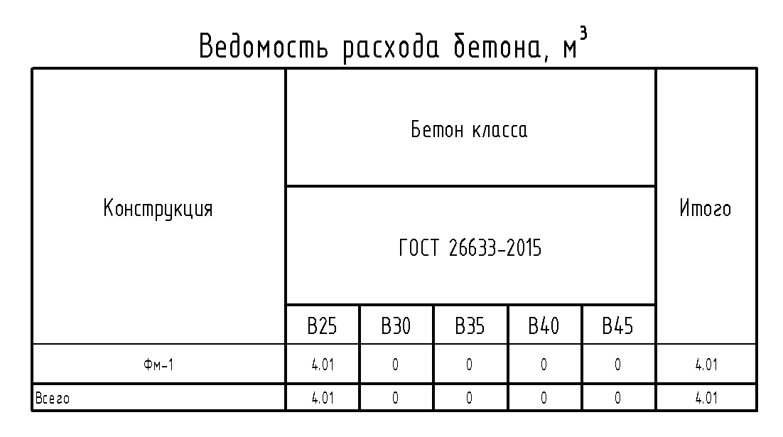 Ведомость расхода бетона